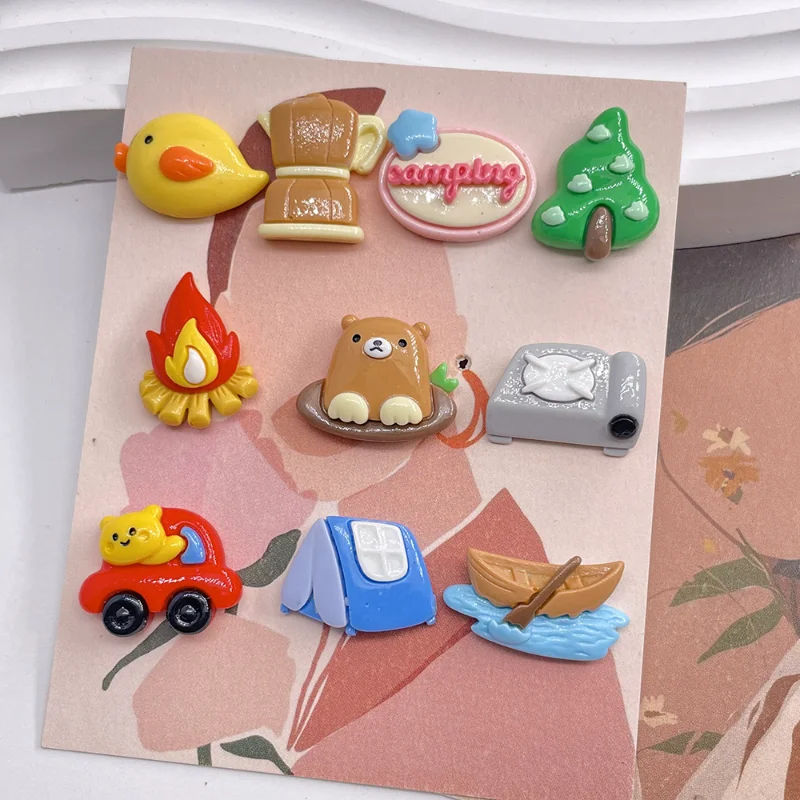 10pcs Camping Tent Fire Bed Boat Picnic Accessoires Miniatures Resin Flatback Cabochons Phone Case Decoration DIY Accessories