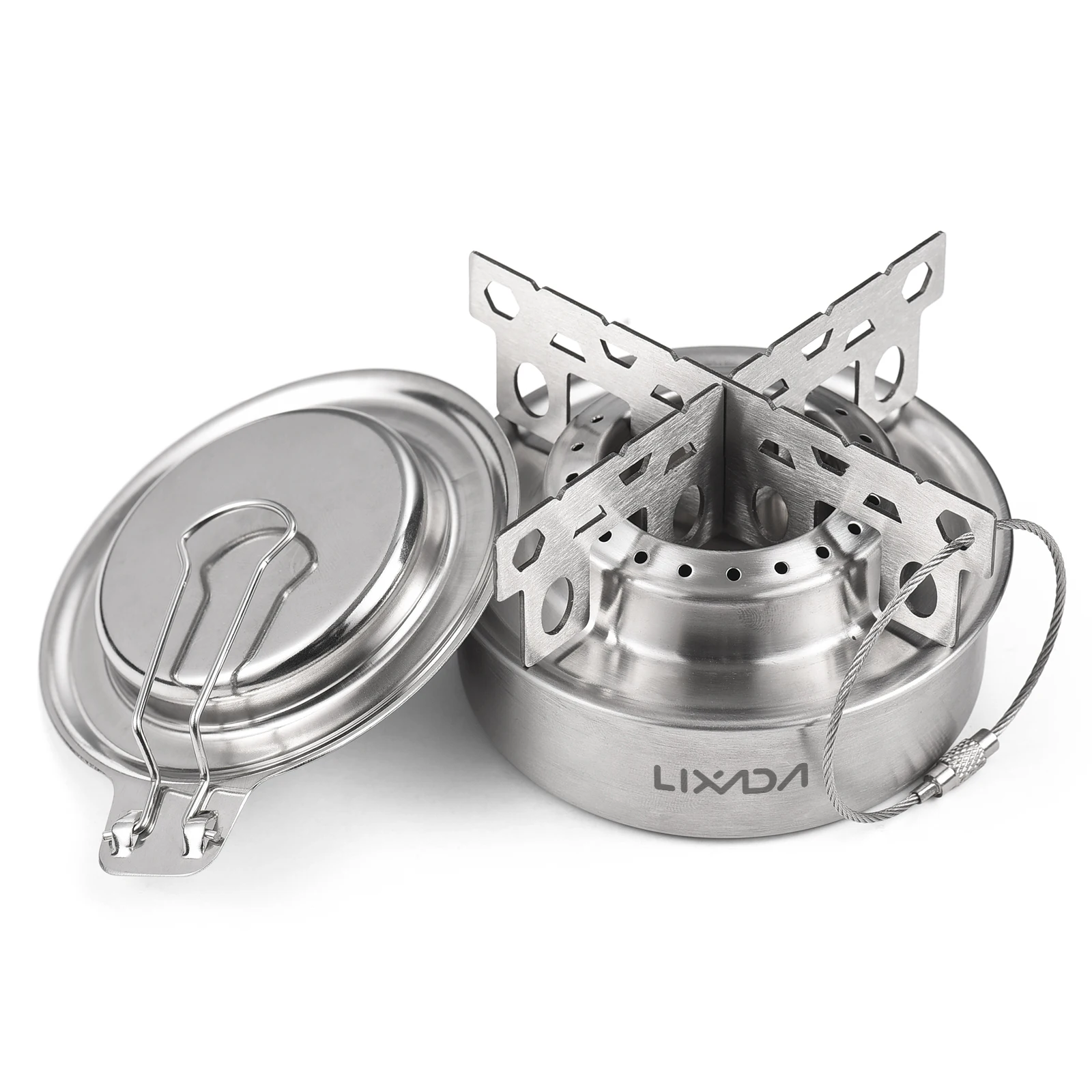 LIXADA Alcohol Stove with Cover/Cross Stand Ultralight Small Stainless Steel Stoves Outdoors for Camping Hiking Backpacking