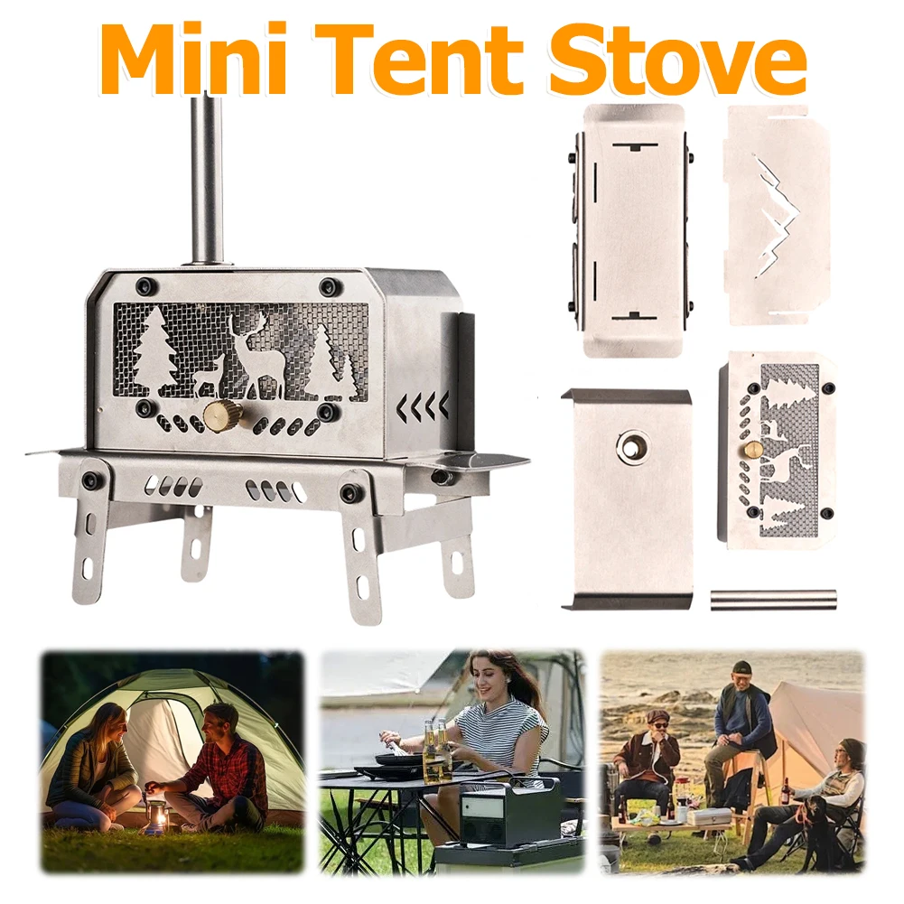 Mini Tent Stove with Chimney Outdoor Firewood Stove Stainless Steel Aromatherapy Holder for Outdoor Cooking BBQ  Read more
