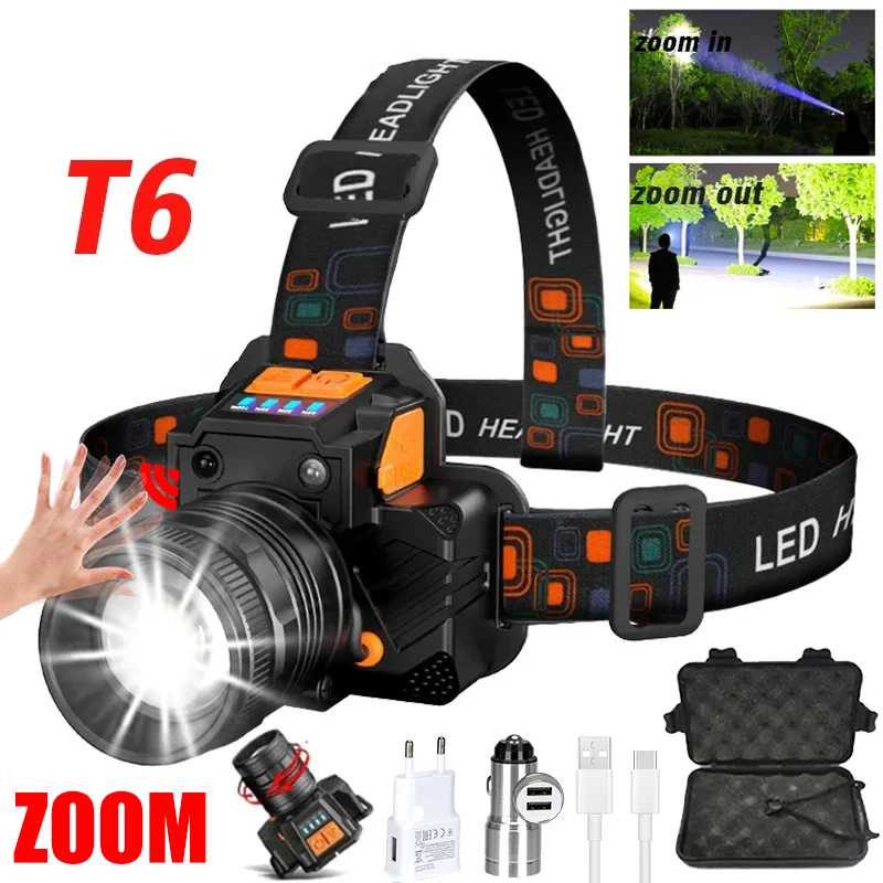 High Power 50W LED Induction Headlamp Rotating Zoom With Built-in Battery USB Rechargeable Head Flashlight For Camping Fishing