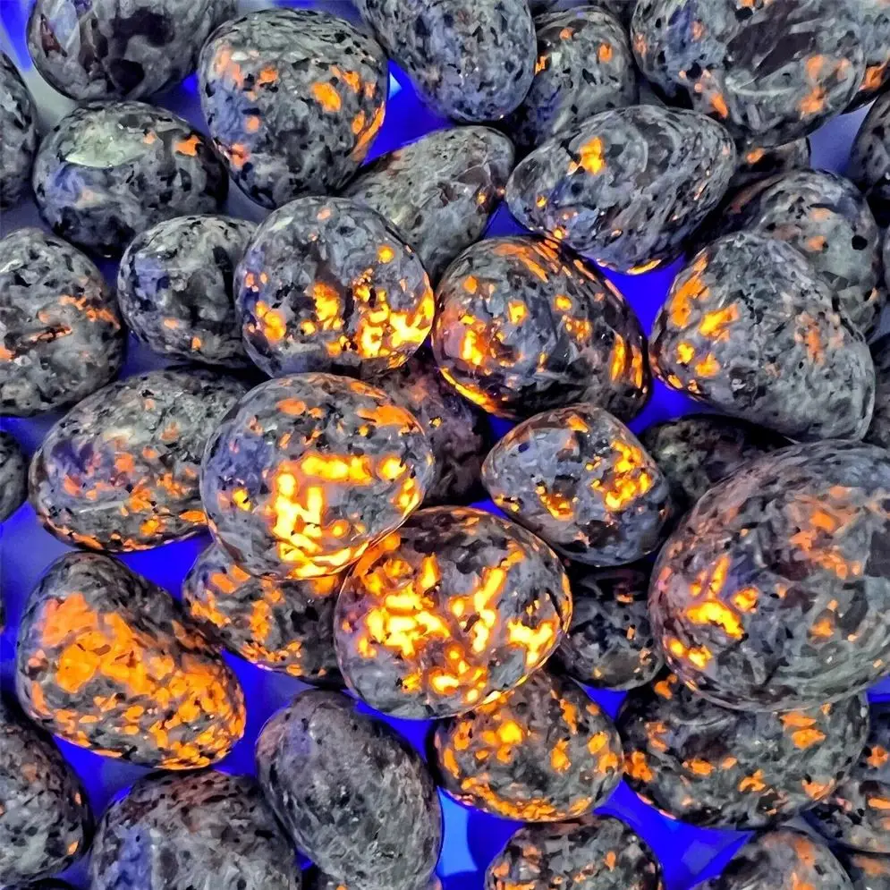 Natural Bright Yooperlites Flamestone UV Glowing Crystal Stone FireStone Fluorescent Sodalite Flame Stone Home Decoration Gift