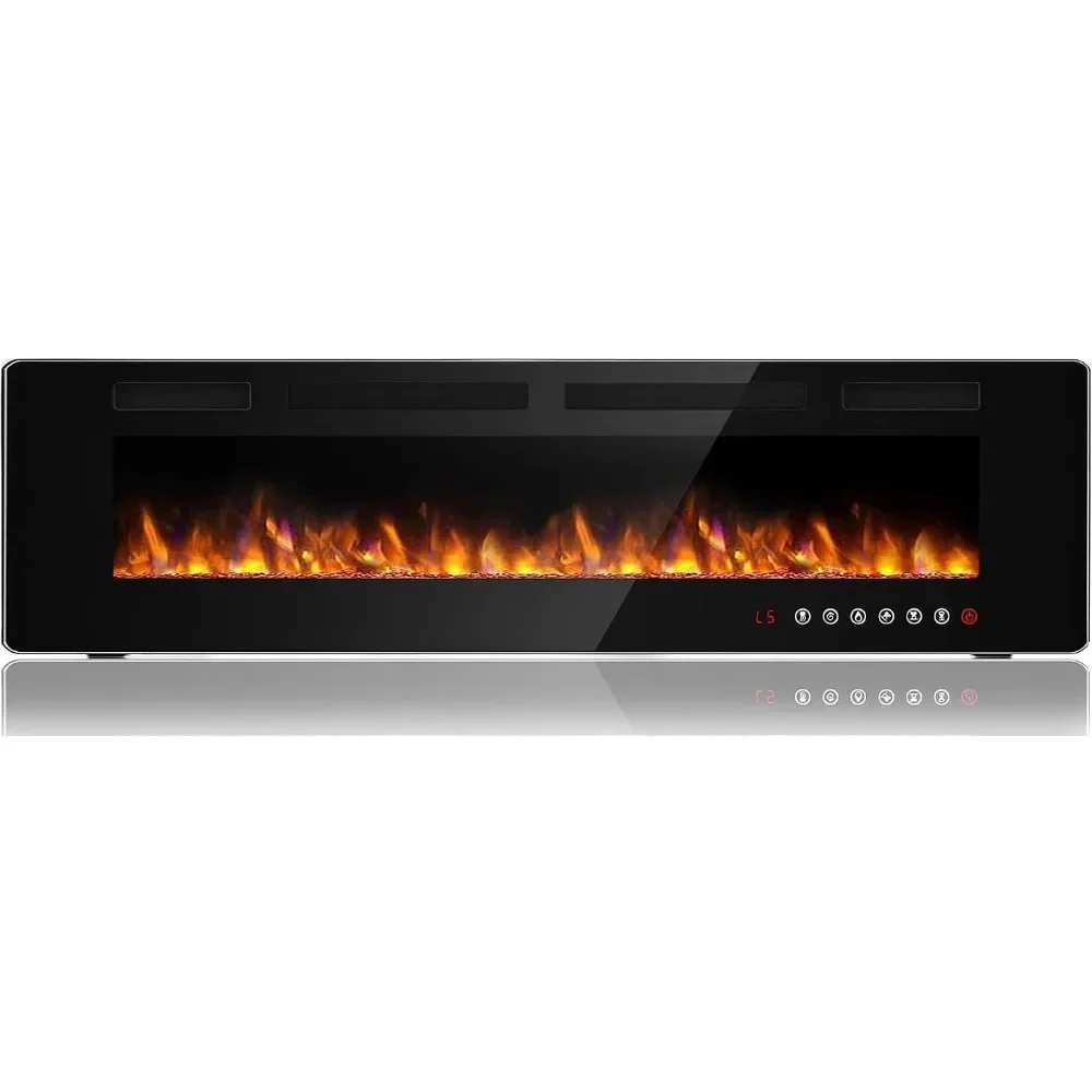 72 Inch Linear Electric Fireplace, Recessed Wall Mounted Fireplace, Fit for 2 X 4 and 2 X 6 Stud, 12 Adjustable Flame Color
