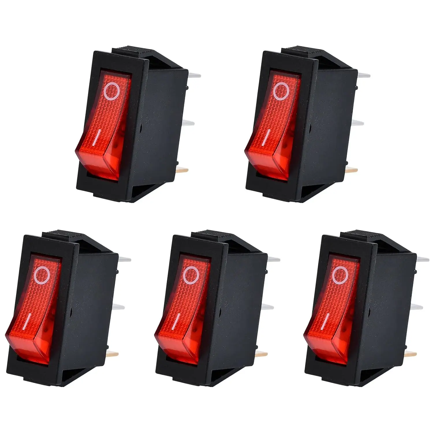 5Pcs Lighted Rocker Switch Red On Off 3 Pin 2 Position Mini Boat Rocker Swtiches for Electric Fireplaces