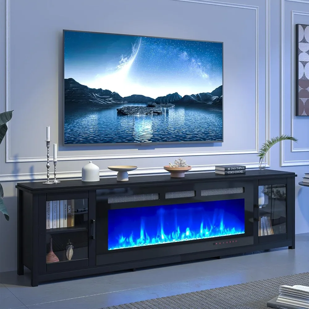 80" Fireplace TV Stand, 50 Inch Electric Fireplace & Modern Entertainment Center, TV Console with Adjustable Shelf & Glass Door
