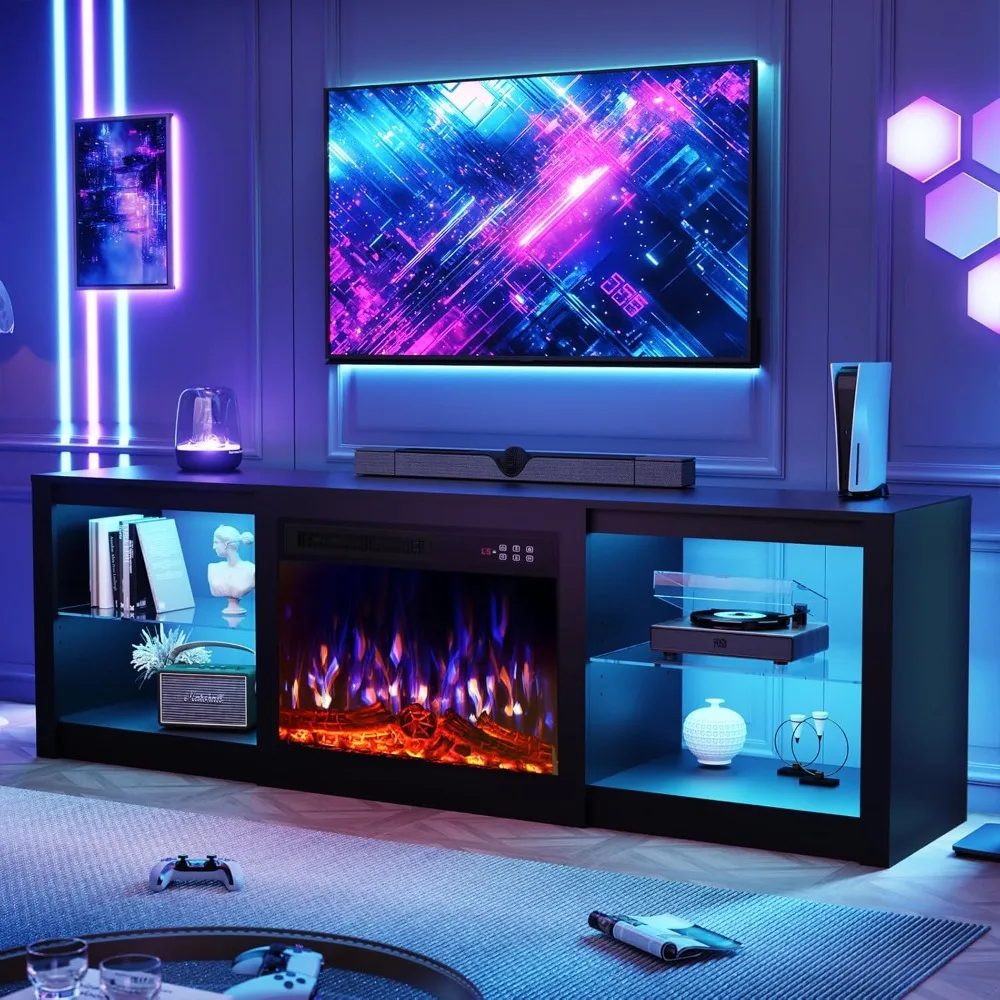 Fireplace TV Stand, 70 inch TV Stand with 23" Electric Fireplace, LED Light Entertainment Center for Living Room, TV Console
