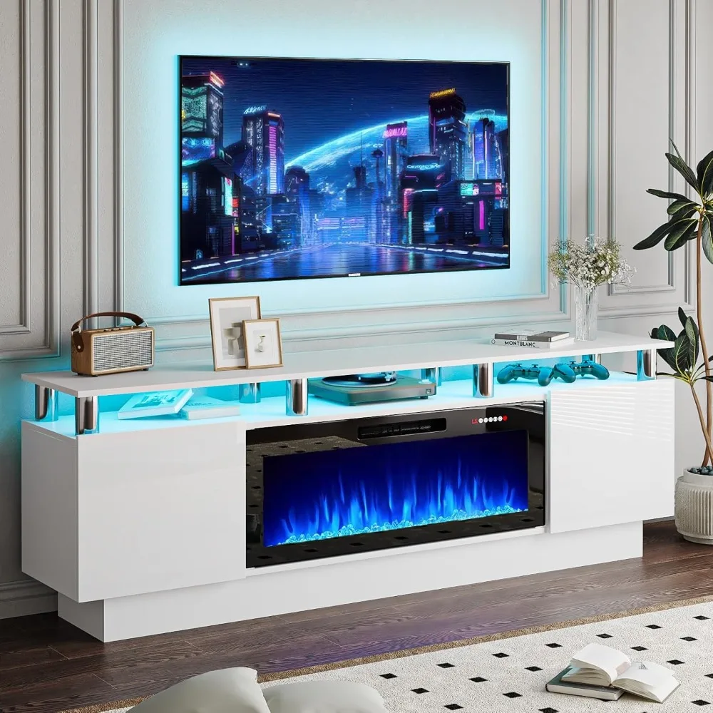 Fireplace with TV Stand 36" inch Electric Fireplace Up to 80" TVs, LED Light Entertainment Center, 70" Modern Wood High Gloss w