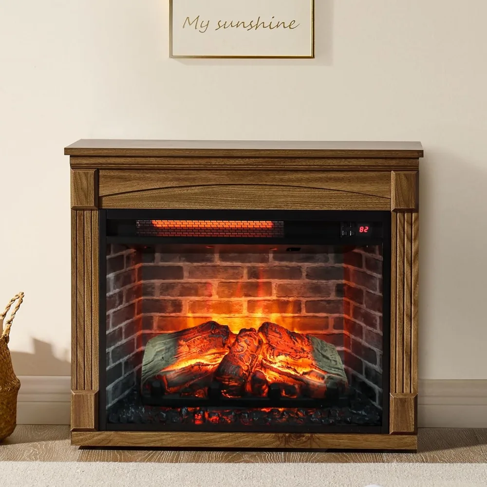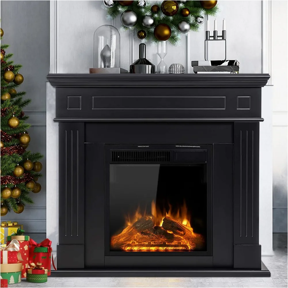 44" Electric Fireplace with Mantel Package Free-Standing Fireplace Heater, Wooden Surround Firebox with Log, Remote Contr