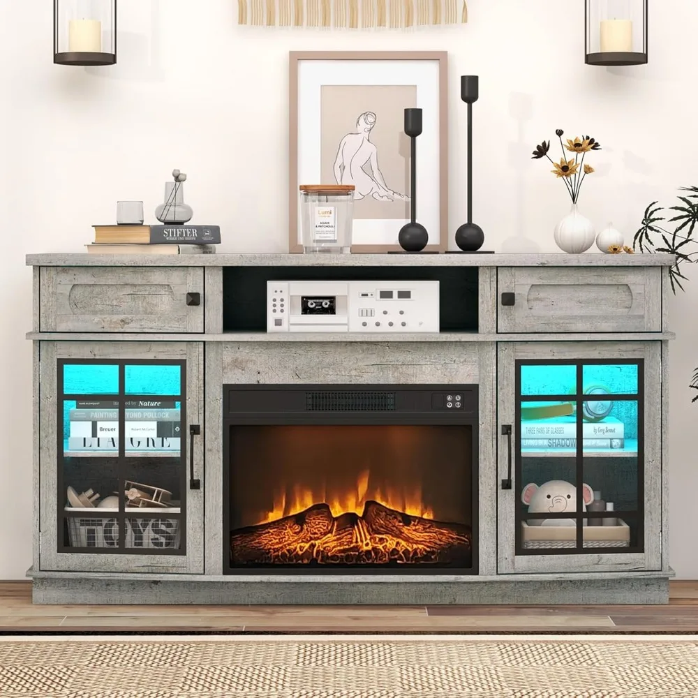 Fireplace TV Stand for TVs up to 85" – Features a 40" Electric Fireplace, 2 RGB LED Lights, and 4 AC Power Outlets