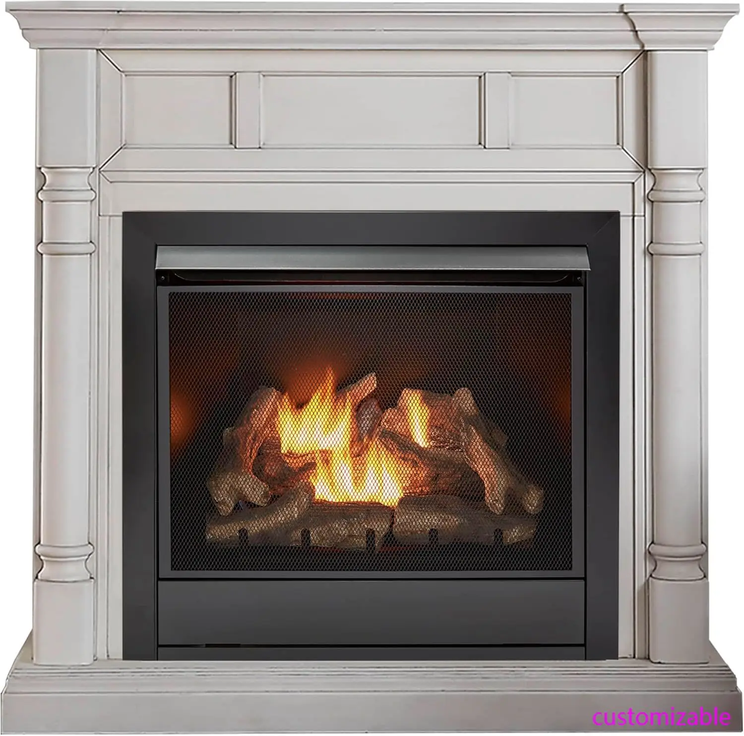 Dual Fuel Ventless Gas Fireplace System with Mantle, Remote Control, 9 Fire Logs, Use with Natural Gas or Liquid Propane