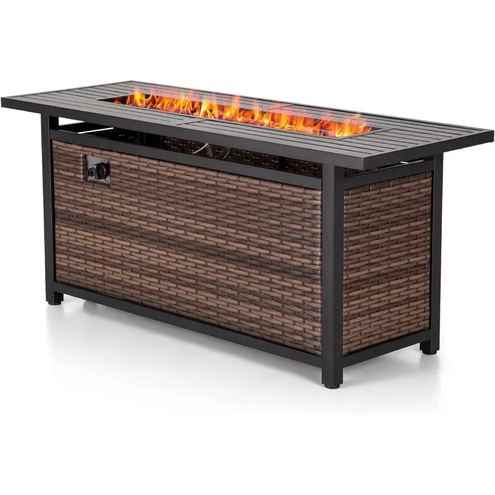 Party 56 Inch Gas Fire Pit Table 50000 BTU Large Long Rectangular Outdoor Propane Rattan Fire Pit Table Fireplace for Patio