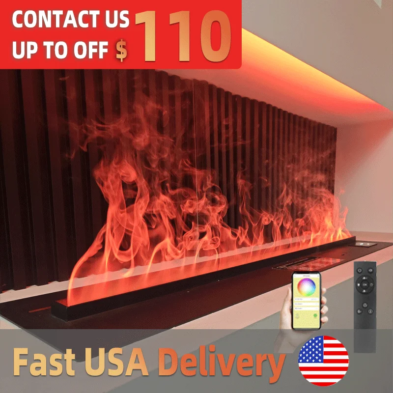 3D Atomized Fireplace APP Control LED Colorful Flame ECO Water Vapor Electric Fireplace for Indoor TV Wall Living Room Decor