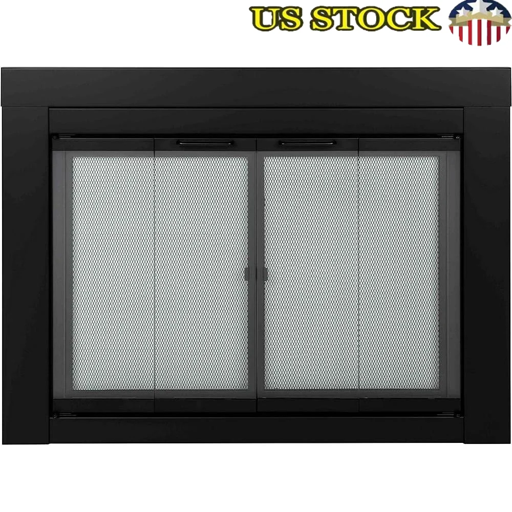 Large Glass Fireplace Door Bi-fold Doors Easy Grip Handles Tempered Glass Mesh Panel Masonry Fireplace Heat Resistant