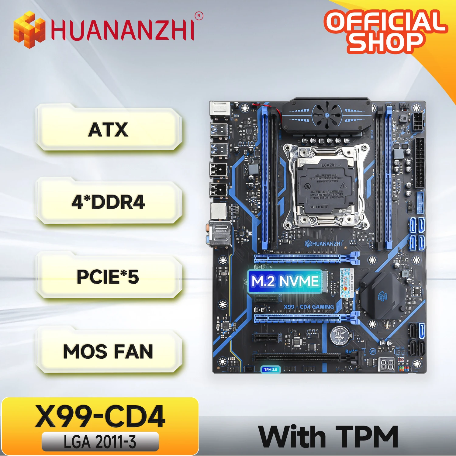 HUANANZHI X99 CD4 LGA 2011-3 XEON X99 Motherboard with TPM2.0 support Intel E5 V3 V4 DDR4 RECC NON-ECC Memory NVME