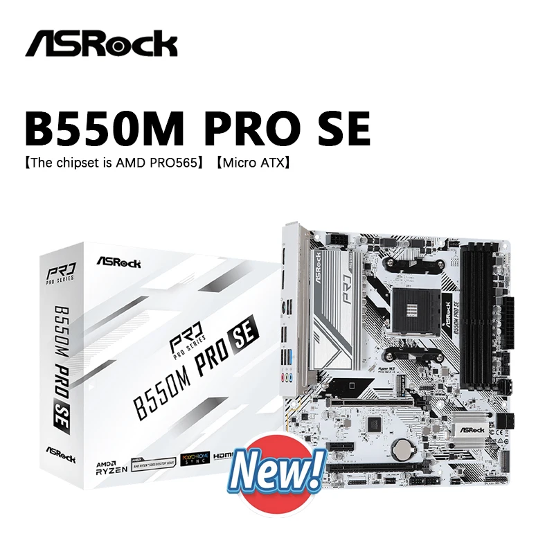 Asrock New B550M Pro SE Motherboard B550 AMD PRO565 Socket AM4 DDR4 128GB PCI-E 4.0 M.2 SATA III 4733+(OC)MHz USB 3.2