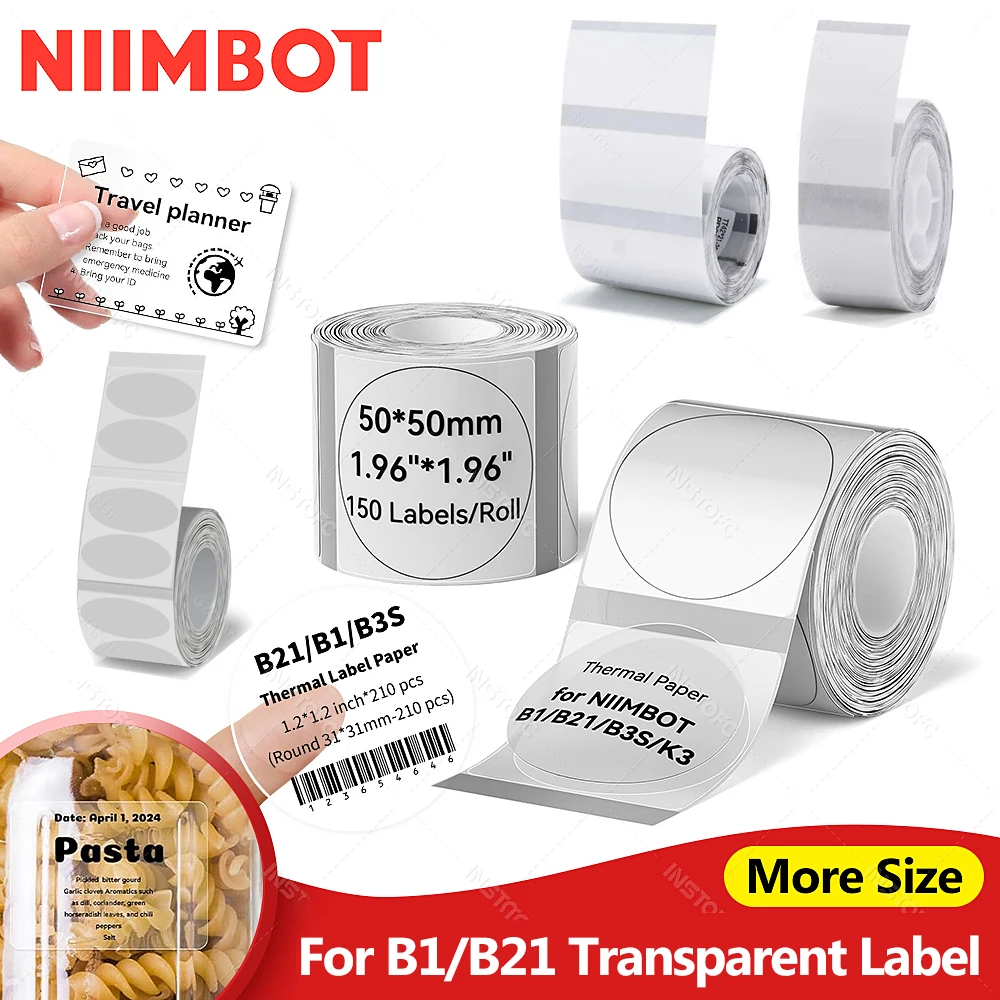 Niimbot B1 B21 Transparent Self-adhesive Label Paper For Mini Portable Thermal Label Maker Printer Clear Round Sticker