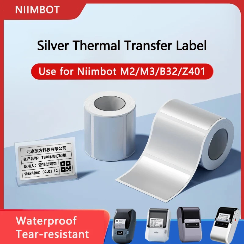 Niimbot M2/M3/B32/Z401 Silver Label Heat Transfer Print Paper Fixed Asset Sticker Office Equipment Laser Silver Self-adhesive