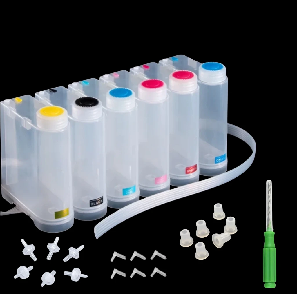 6Colors 500ml DIY Ciss System Tank With Accessories For HP/CANON/EPSON/BROTHER Inkjet Printers