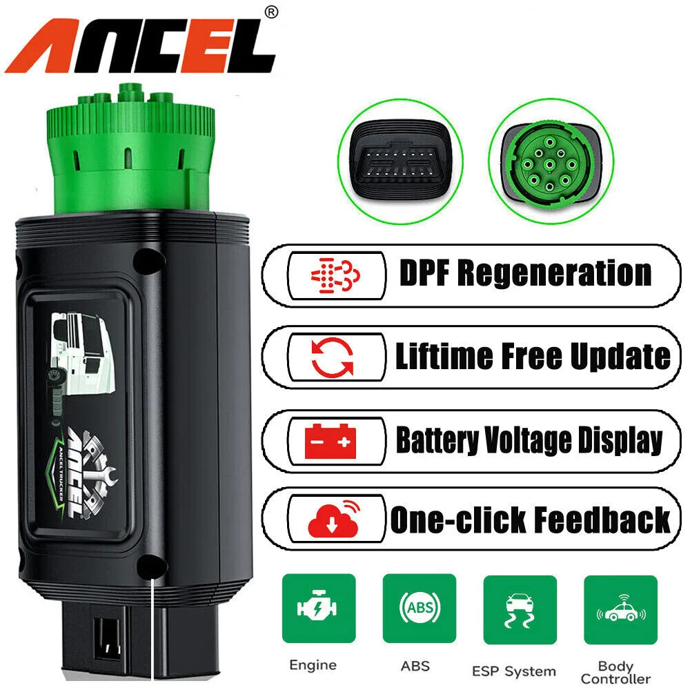 ANCEL HD120 Bluetooth Heavy Duty Truck Scanner 9/16 Pin D.P.F Forced Regen for International & Volvo All System Diagnostic Tool  Read more