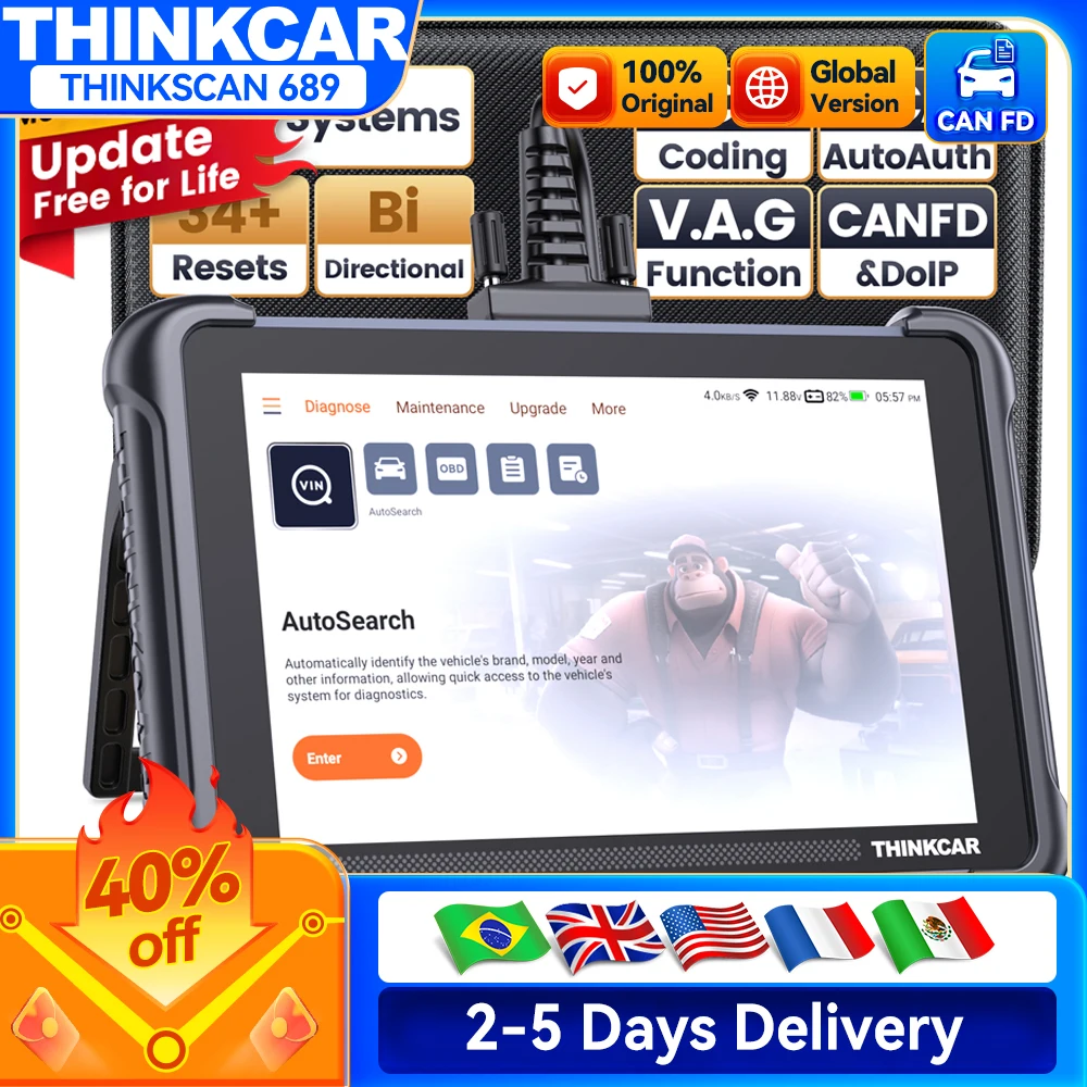 Lifetime Free Update THINKCAR THINKSCAN 689 OBD2 Scanner Full System Diagnosis CANFD/DOIP ECU Coding Bidirecional 34 Reset