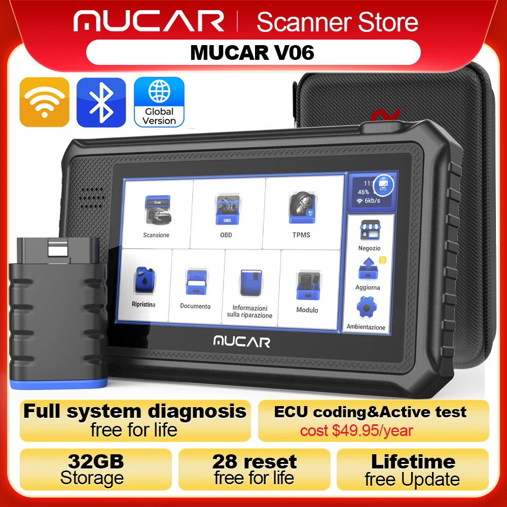 MUCAR VO6 OBD2 Scanner 32GB All Systems Diagnostic 28 Reset Auto VIN EPB/BMS/SAS/ABS Sevice Lifetime Free Update