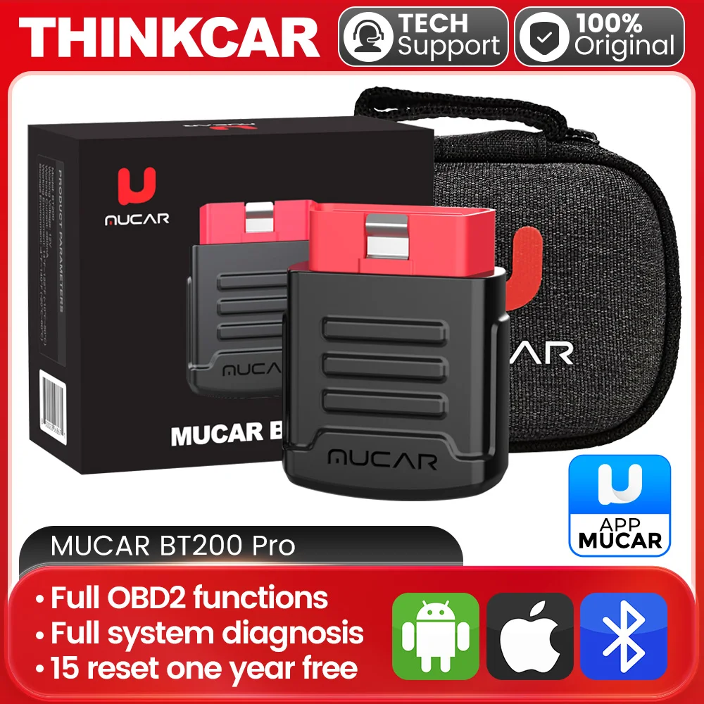 MUCAR BT200&BT200 Pro OBD 2 Scanner Bluetooth Diagnostic Tool Full System Diagnose Oil SAS 15 Reset for All Cars Code Reader