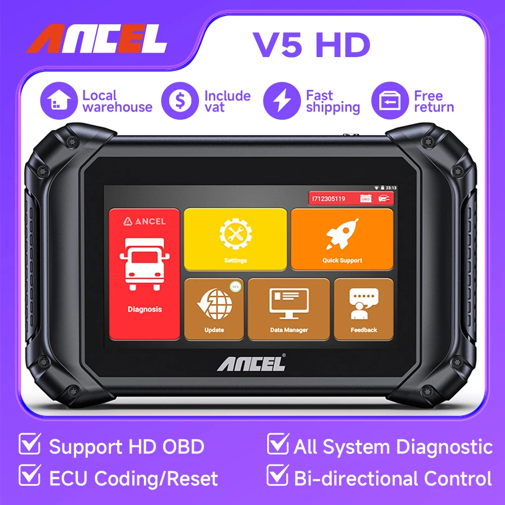 ANCEL V5 HD Heavy Duty Truck Diagnostic Tool All System ECU Coding BI-Directional OBD2 Truck Scanner PK ANCEL X7 HD