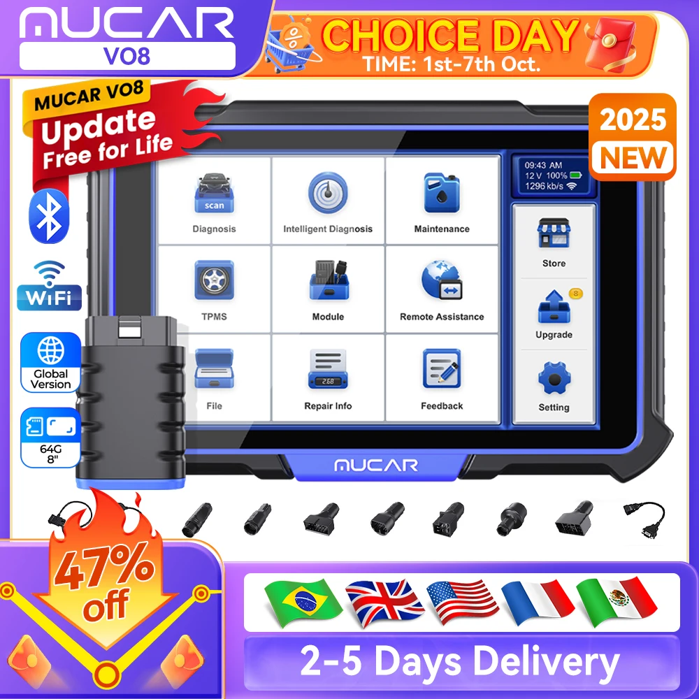 Gobal Version MUCAR VO8 Professional OBD2 Diagnostic Tool Full System Diagnosis ECU Coding Bi-direcional 34 Resets lifetime Free