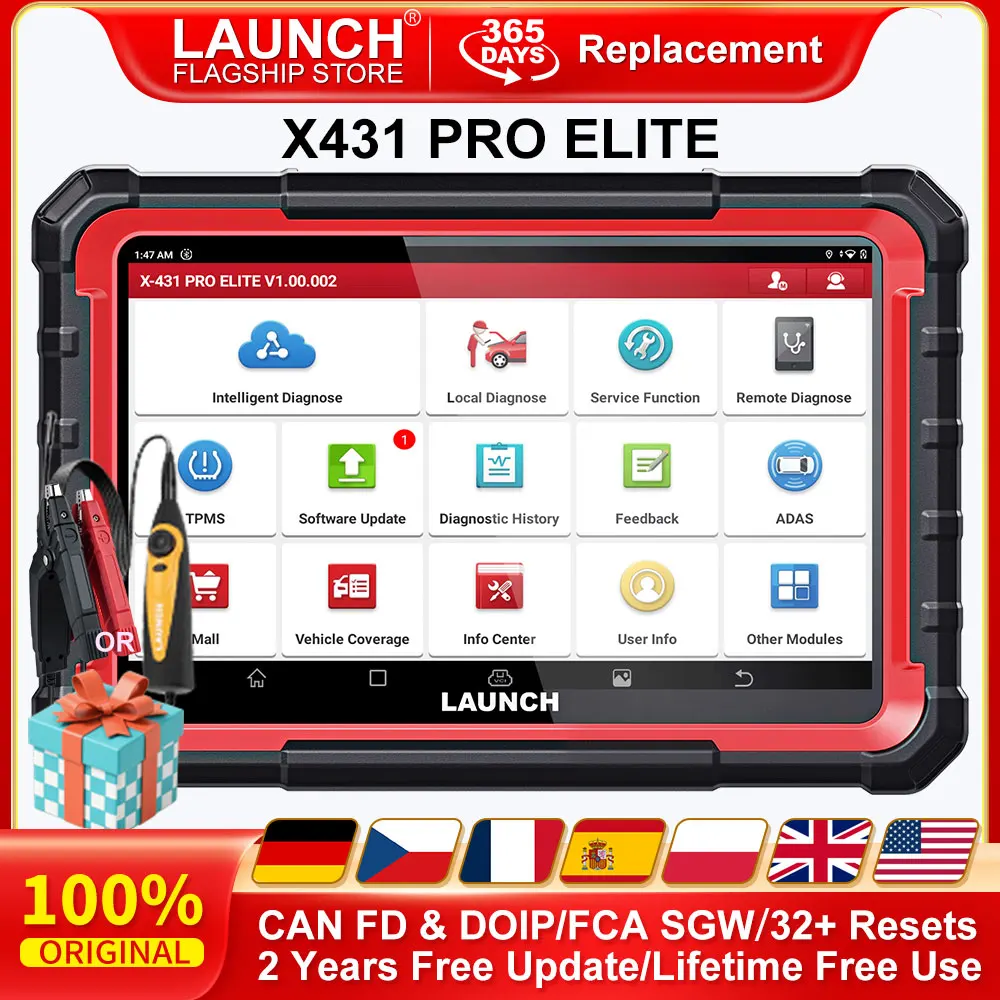 LAUNCH X431 PRO ELITE OBD2 Scanner Full Systems Car Diagnostic Tool 32 Reset CANFD DOIP ECU CODING Active Test FCA SGW VAG