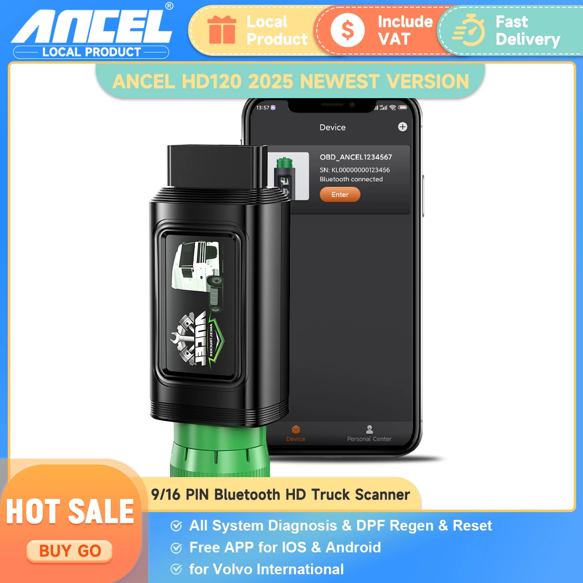 ANCEL HD120 Bluetooth Heavy Duty Truck Scanner All System D.P.F Regen Diesel Truck Scan Diagnostic Tool for Volvo International