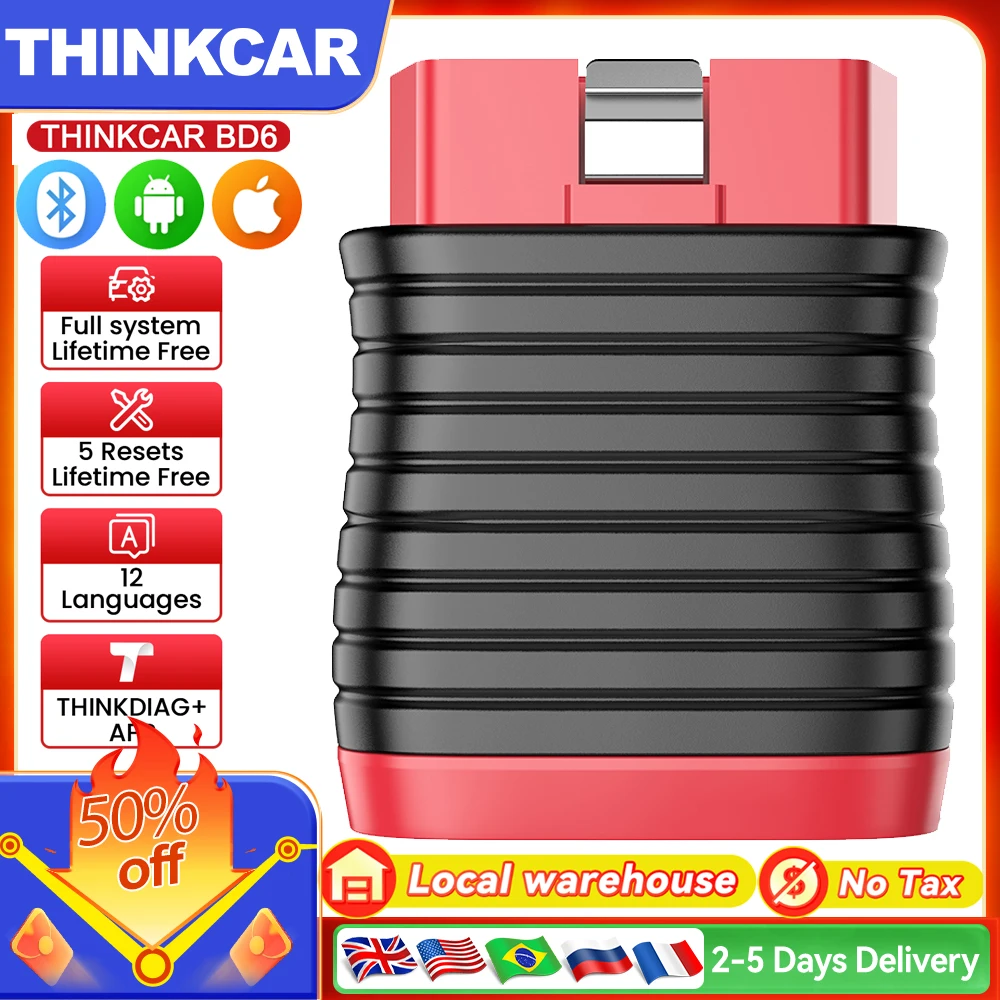 THINKCAR BD6 obd2 Scanner Bluetooth Diagnostic Full System Diagnosis 5 Reset Function Scan Tool Lifetime Free for All Cars