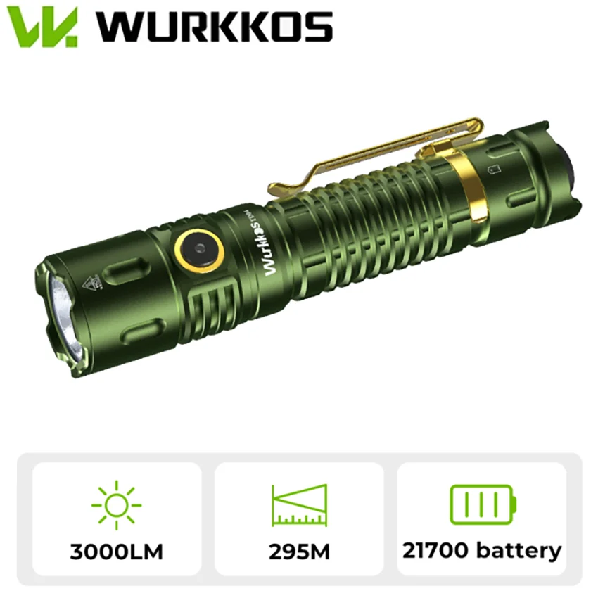 Wurkkos TD04 21700 Rechargeable Two Mode Group Tactical XHP50D HI Flashlight USB-C 3000 Lm Torch IP68 Waterproof EDC Tail Switch
