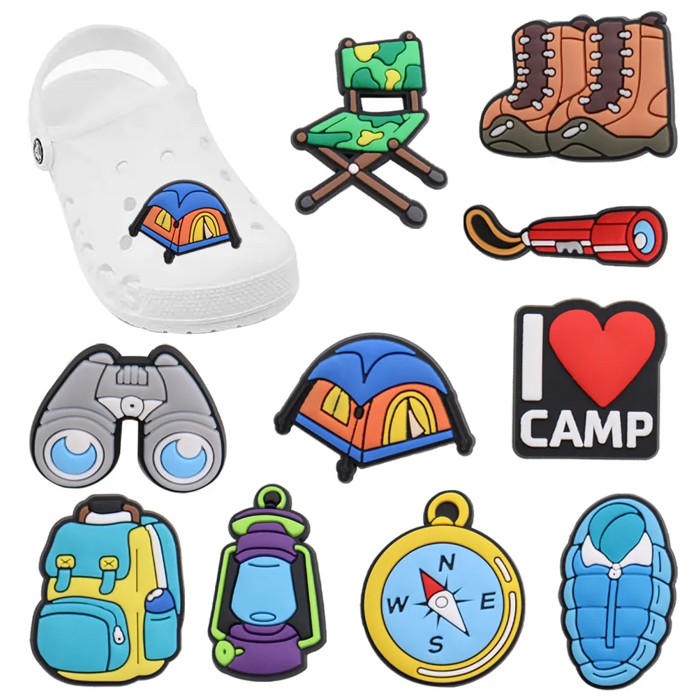 10pcs/set Tent Camping School Bag Compass PVC Shoes Accessories DIY Garden Shoe Decorations Fit Kids Charm Party Gift