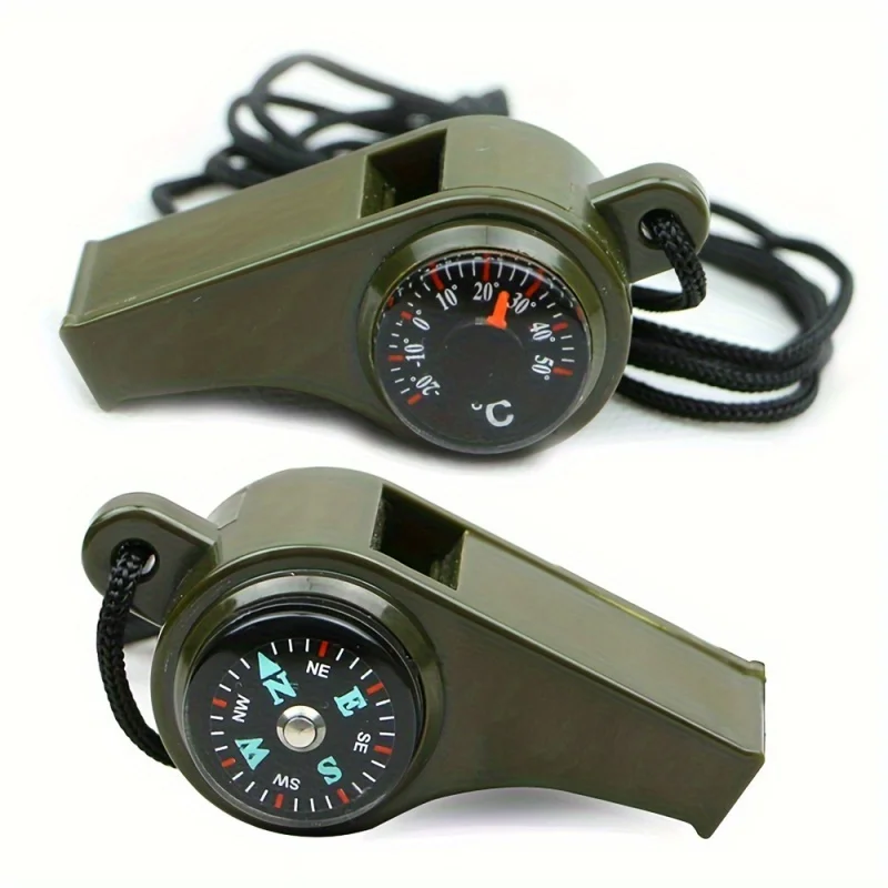 3-in-1 Emergency Survival Whistle with Compass Thermometer For Camping Hiking Outdoor Adventures Durable Metal Construction