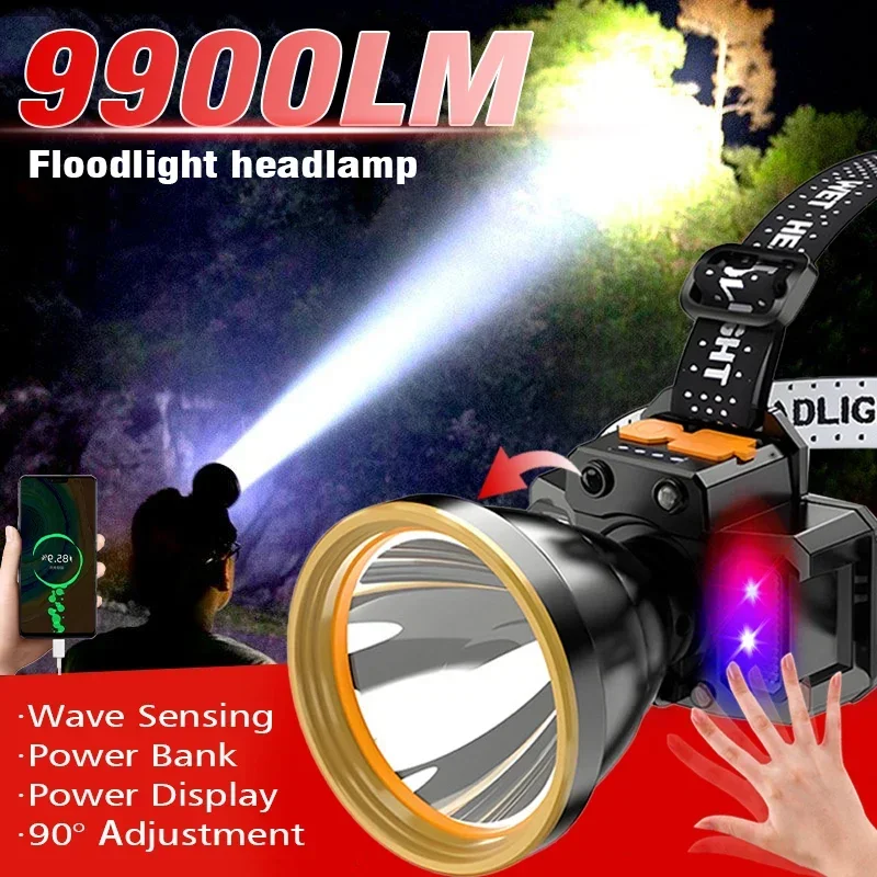 Rechargeable Headlamp 2000mah Super Bright Torch Light T55 Induction LED Headlight Waterproof Camping Mobile Power Bank Flashing