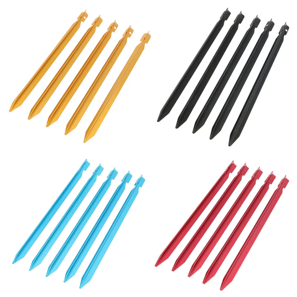 5pcs 23cm Aluminum Camping Tent Stakes Pegs Triangle Ground Nails Outdoor Hiking Beach Garden Park Travel Beach TarpTent Wind