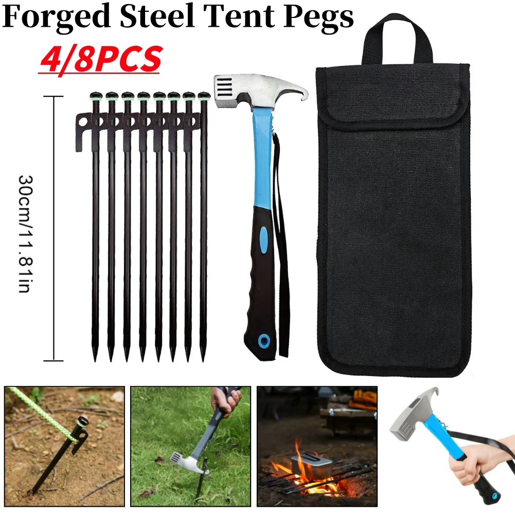 4/8Pcs Tent Stakes Forged Steel Tent Pegs Heavy Duty Ground Stakes with Storage Bag Camping Tent Spikes for Camping Picnic