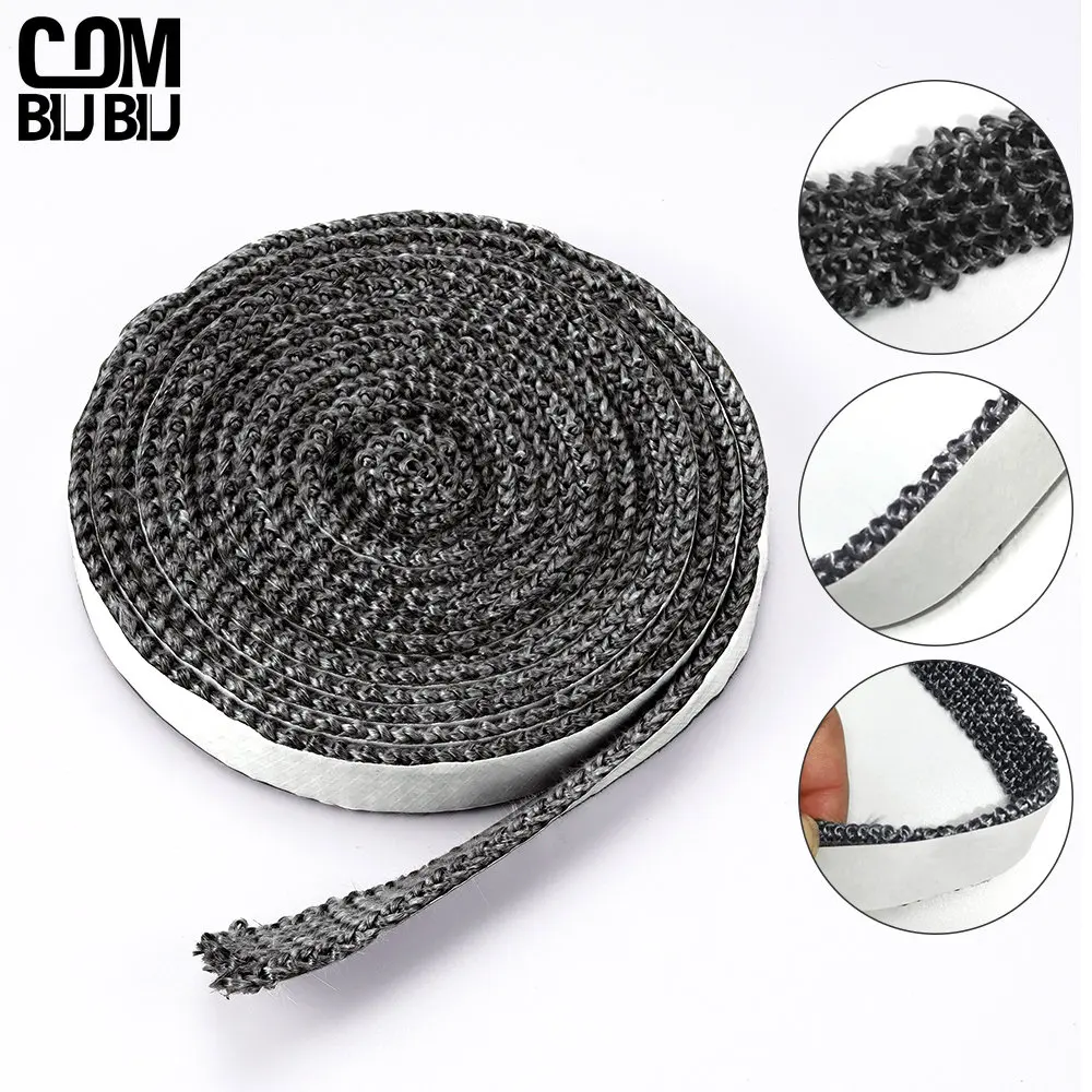2m/3m Black Flat Stoves Rope Self-Adhesive Fiberglass Fireplace Chimney Door Sealing Cord Replacement Gasket Tape 10mm/15mm