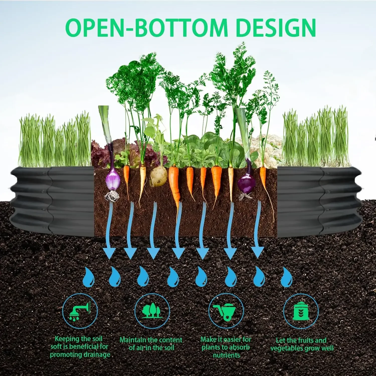 XMSJ.Durable Round Galvanized Steel Raised Garden Bed for Planting, Round Galvanized Steel Fire Ring/Fir Pit for Outdoor