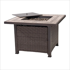 Sunjoy Group 38-Inch Wicker Propane Fire Pit Table with Ceramic Tile Tabletop and Lava Rocks
