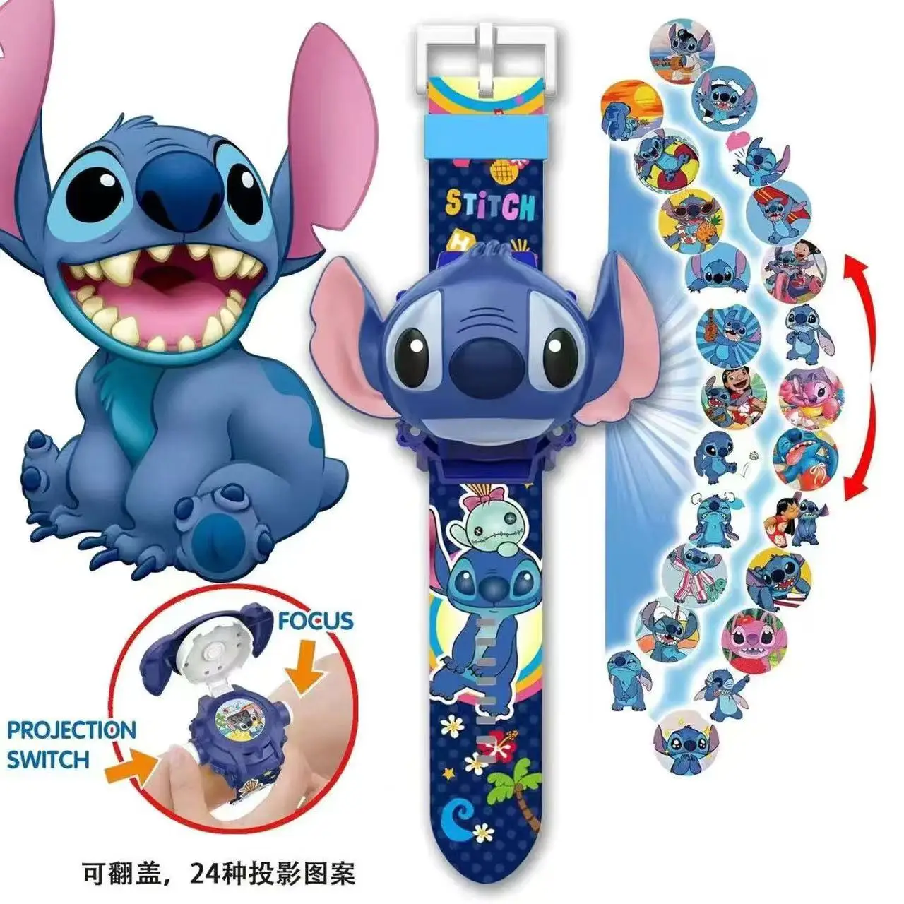 Stitch Cartoon 24 Pattern 3D Projection Watch Kids Flip Toy Watchs Anime Electronic Clock Projector Toy Birthday Gif