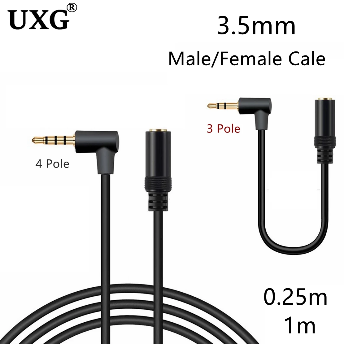 1m 20CM 90 Degree Right Angle 3pole 4 Pole TRRS 3.5mm Aux Audio Short Cable Extender Adapter M/F 3.5mm for PC OR Mic-earphone