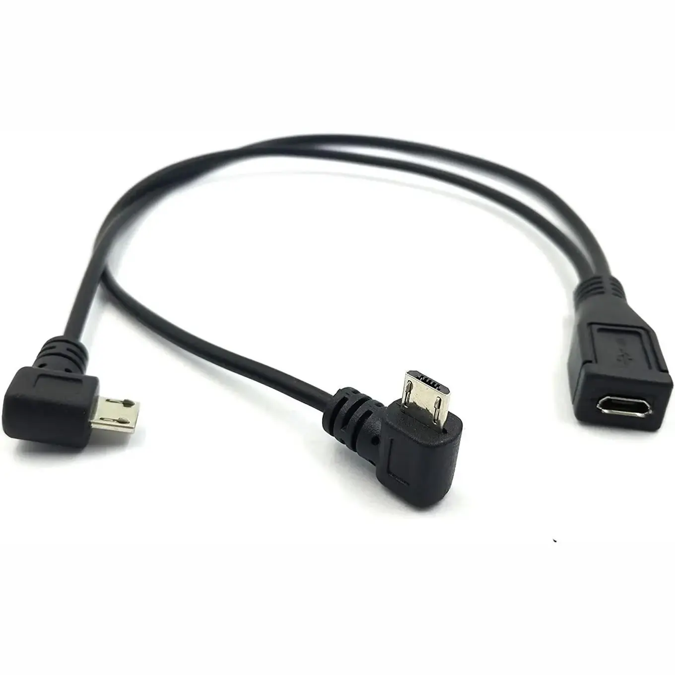 Micro USB Splitter Cable Micro USB Female 1 to 2 Micro USB Male Right Angle 90 Degree Converter High Speed Charging Cable Cord