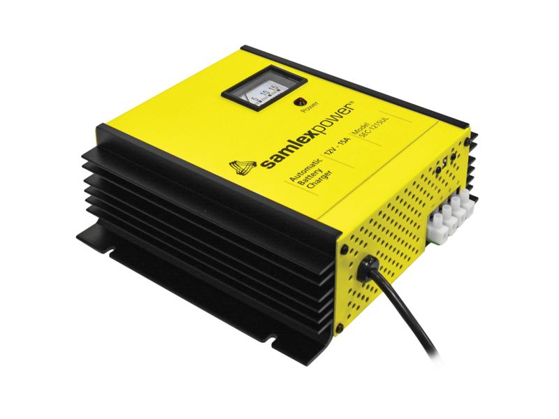 Samlex America 15A Battery Charger - 12V - 3-Bank - 3-Stage w/Dip Switch & Lugs SEC-1215UL. By means of a DIP switch setting conversion to a two-stage algorithm is possible to charge batteries connected to a DC load (DC UPS). The unit can also be...  Read more