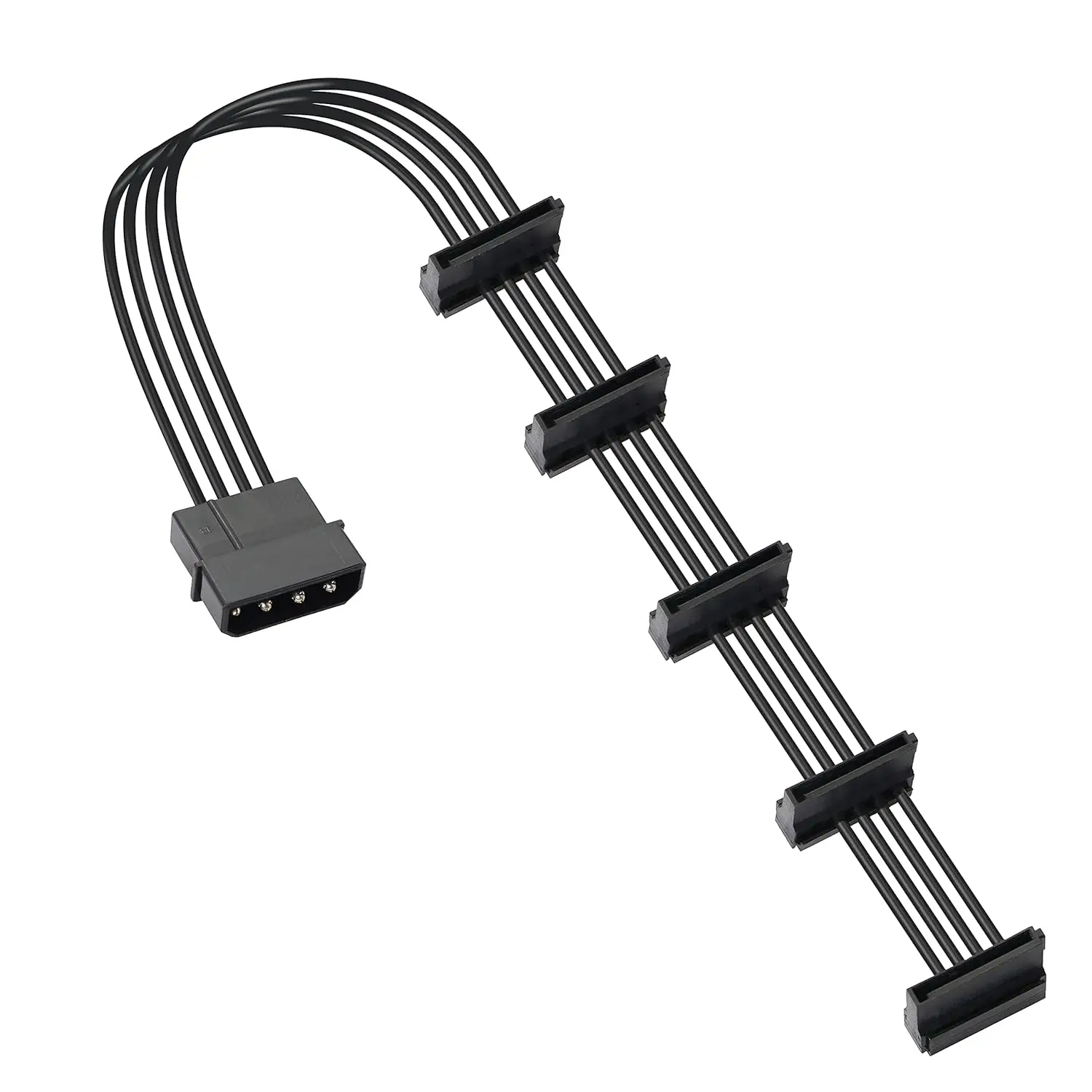 High Quality 1 Pcs Practical Durable PC Server 4 pins IDE Molex 1 to 5 SATA Power Cable Adapter Splitter Cables 18AWG Black 40cm