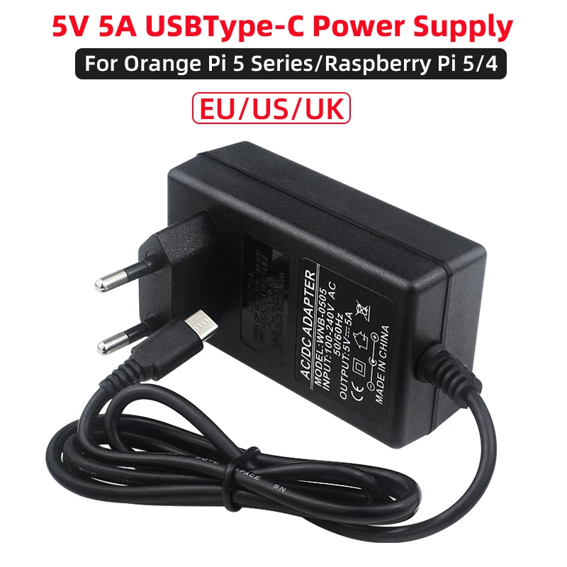 5V 5A Power Adapter for Orange Pi 5 Pro / Max / Ultra / Plus / 4A / RV2 USB Type-C Power Supply EU US UK Plug Raspberry Pi 5 4