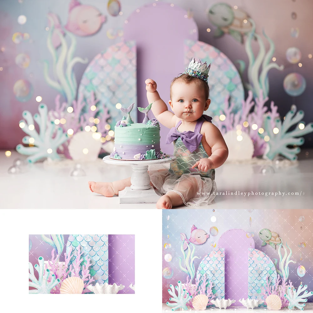 Pastel Mermaid Backdrops Kids Baby Photocall Props Child Adult Photography Decors Princess Birthday Cake Smash Background