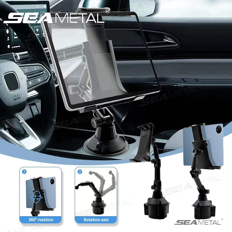 SEAMETAL Car Drink Holder Tablet Mount Flexible Rotation Stable Car Phone Holder Non-Slip Adjustable Base Universal for 6-12.9in