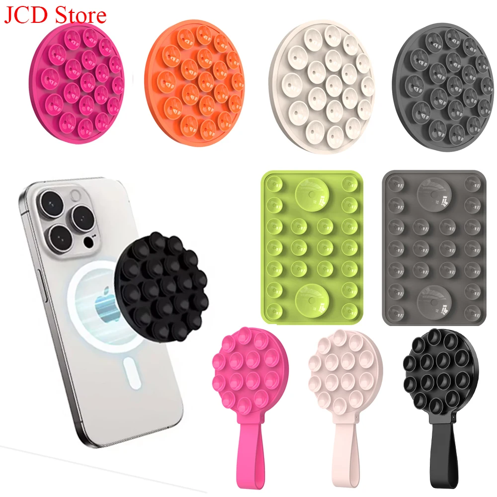 Multi Functional Magnetic Phone Holder with Silicone Suction Cup Portable Handheld Person Stand For Magsafe iPhone 16-12 Mount