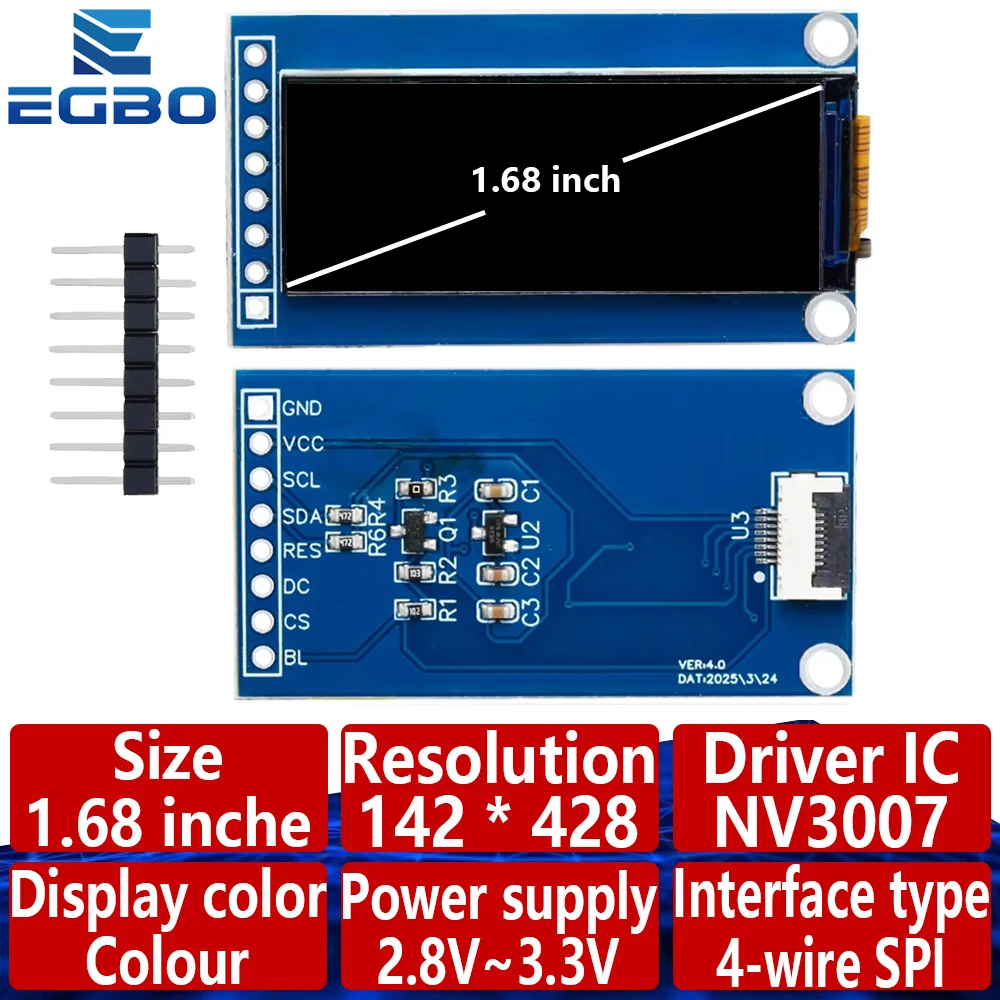 1.68-inch TFT Display Module NV3007, Long Strip LCD Screen with 142x148 Resolution, Full View SPI Color LCD Module for Arduino