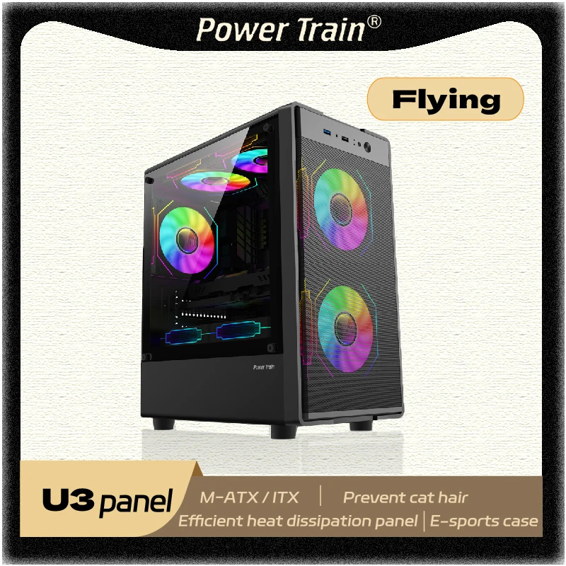 Power Train Flying PC gaming case MATX Side transparent glass computer case Iron net heat dissipation U3 interface E-sports case